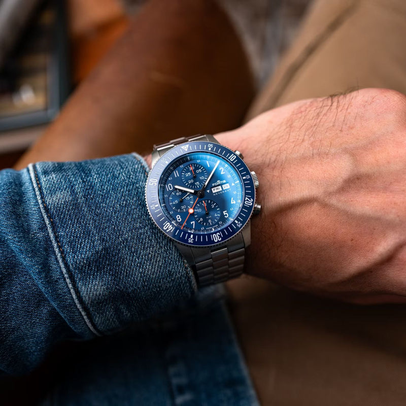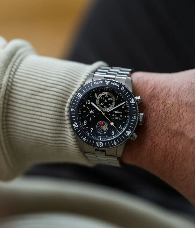 Fueled by the space-approved Fortis Werk 17, packing a 60-hour power arsenal, this column-wheel chronograph is a relentless machine.