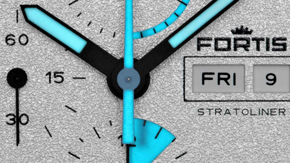 The Fortis Werk 17 Automatic Manufacture Calibre features a column wheel chronograph for enhanced reliability. Regulated to chronometer standards by the Fortis Watchmakers in Grenchen according to the Fortis Performance Requirements.