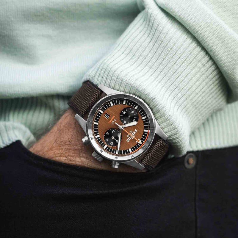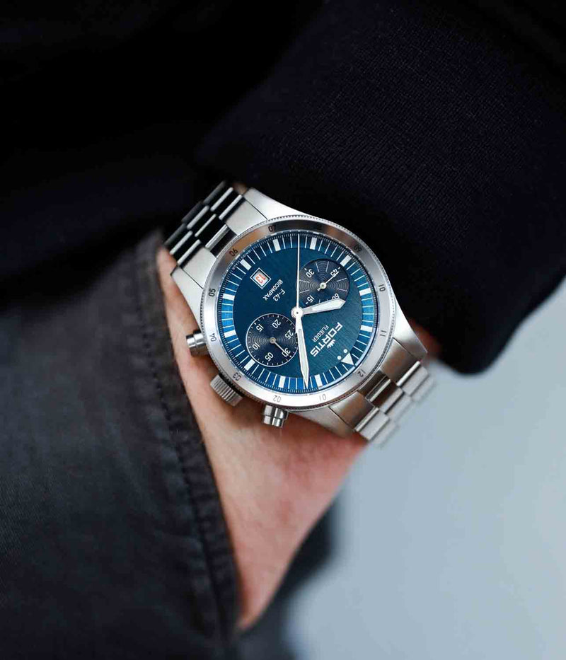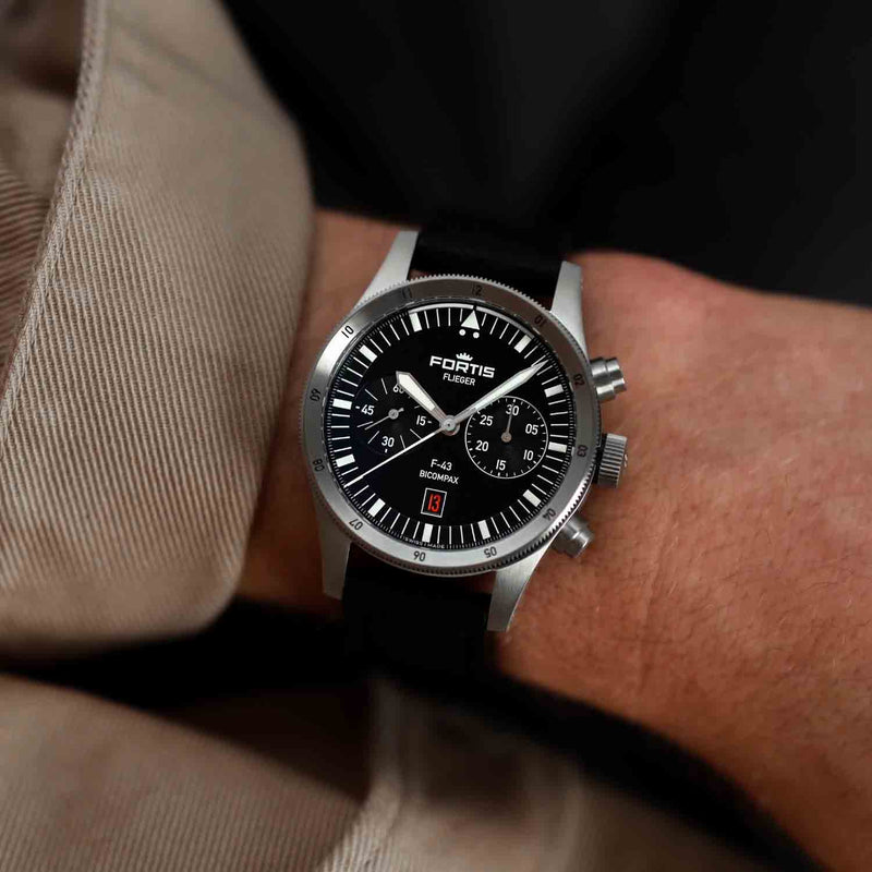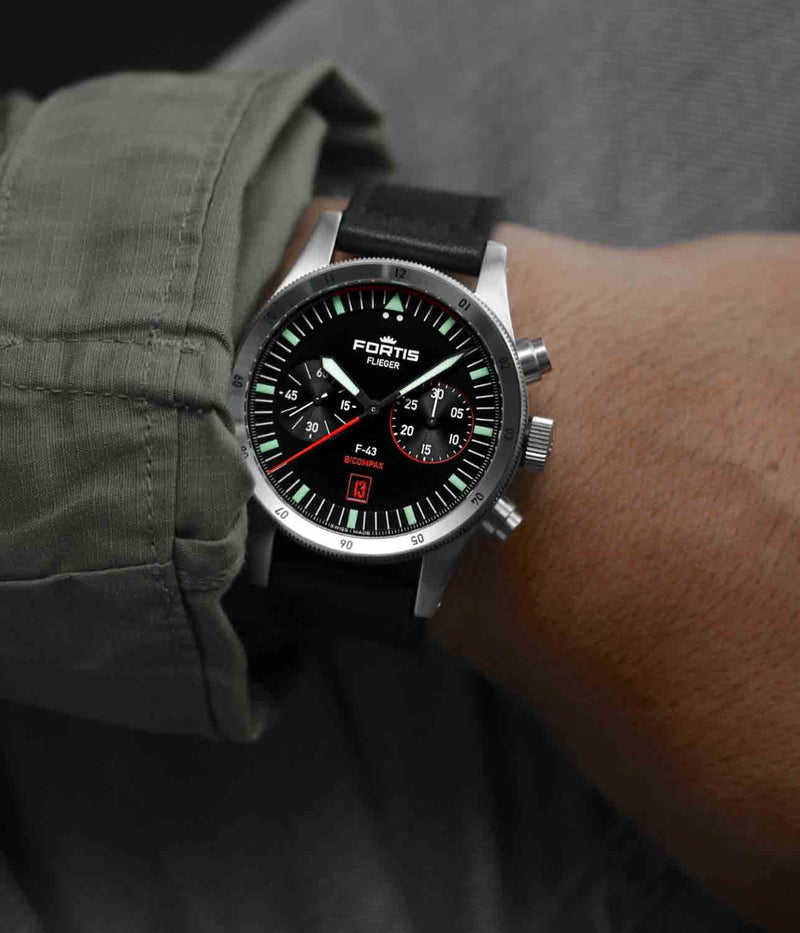 Der Flieger knüpft an unsere über 40-jährige Luftfahrtgeschichte an und bildet einen nahtlosen Übergang in die Moderne. In Zusammenarbeit mit der Schweizer Luftwaffe haben wir Design und Funktion perfektioniert und die lesbarste Uhr geschaffen.