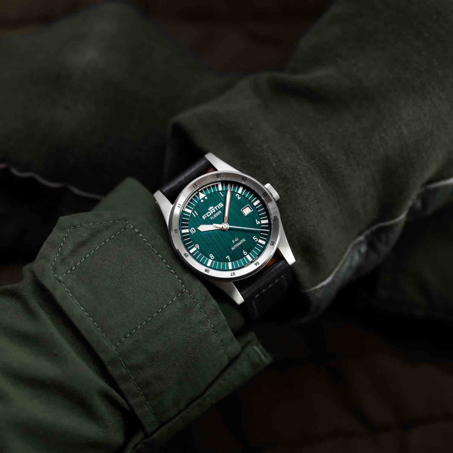 Das gebürstete Zifferblatt der Flieger in Petrol wirkt lebendig, sein unkonventionelles Design strahlt förmlich mit Superluminova®X1. Die Ablesbarkeit ist sofort gegeben, was ihn perfekt für diejenigen macht, die auf einen Blick Klarheit verlangen.