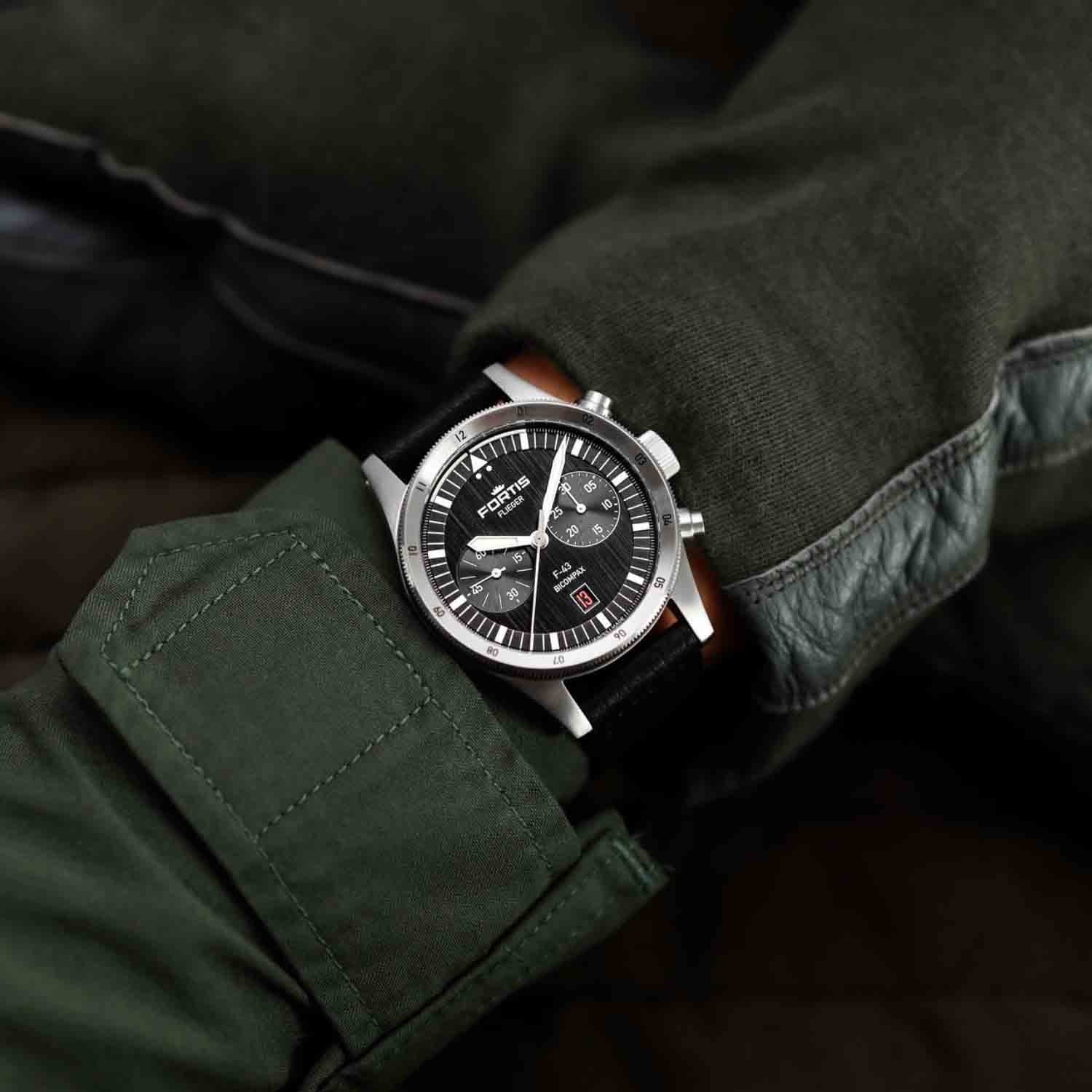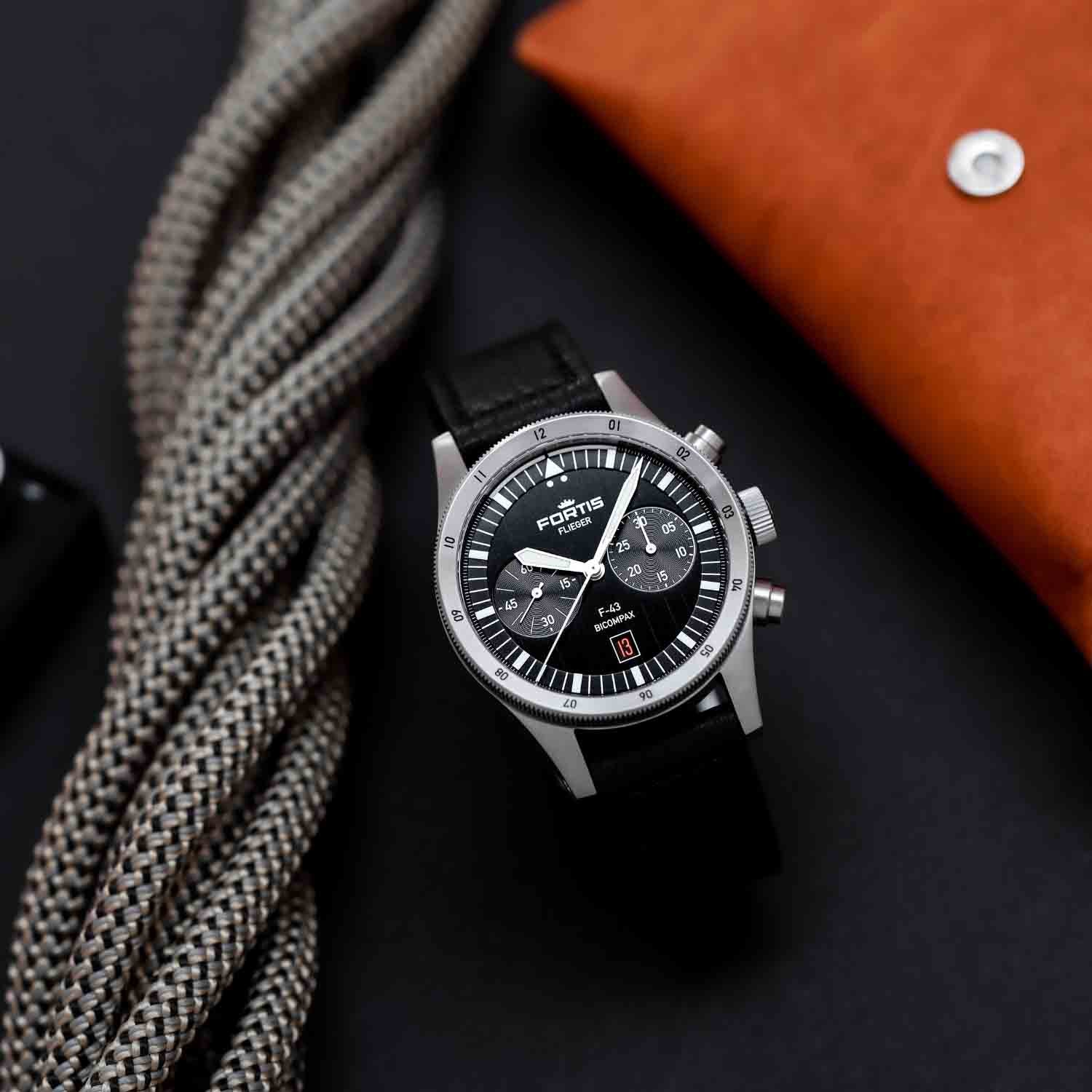 Das Zifferblatt der Flieger F-43 Bicompax Black ist ein Meisterwerk an Präzision und Klarheit. Von den auffälligen Superluminova X1-Markierungen bis hin zum schlanken, stromlinienförmigen Design ist jedes Detail so konzipiert, dass es unter allen Bedingungen einwandfrei funktioniert.