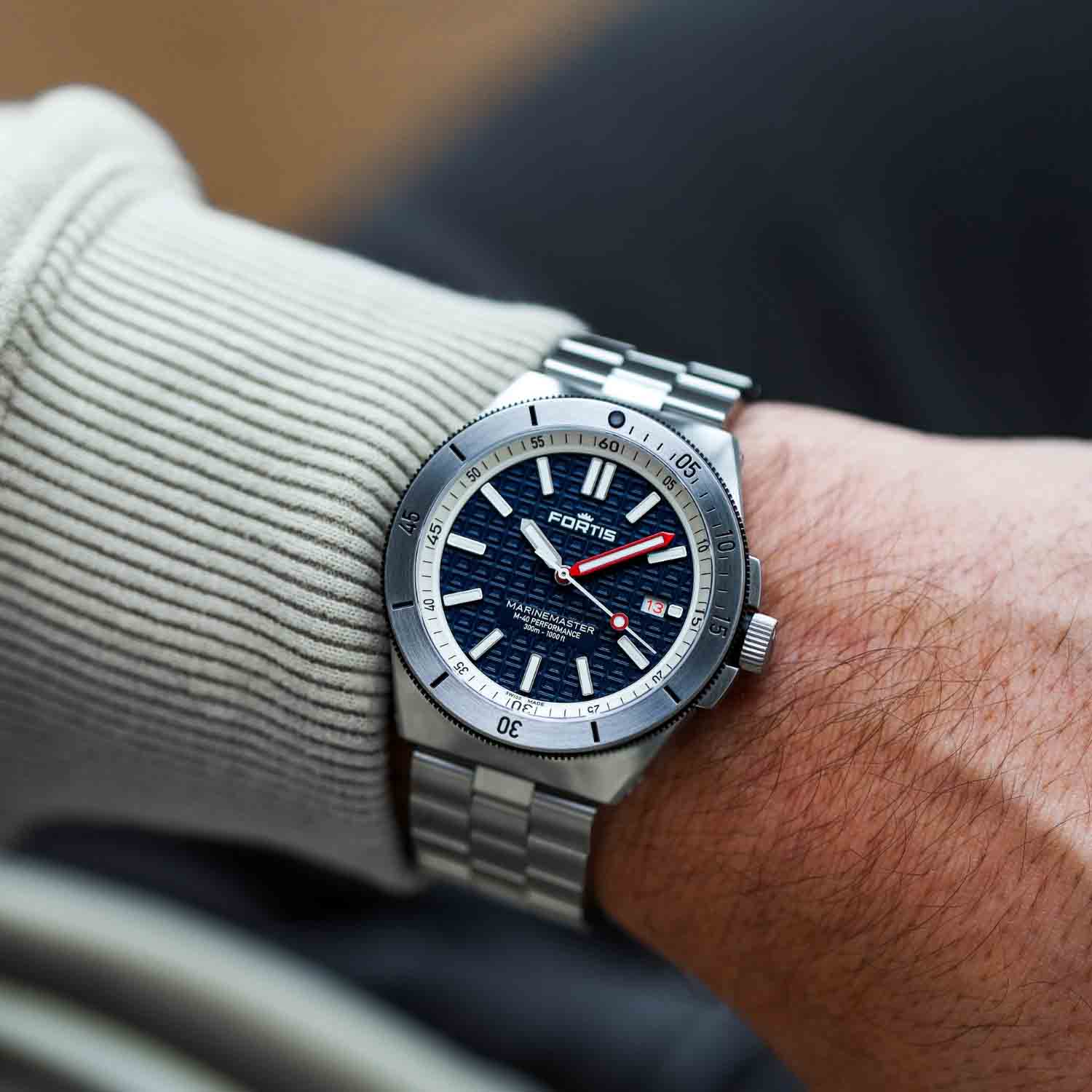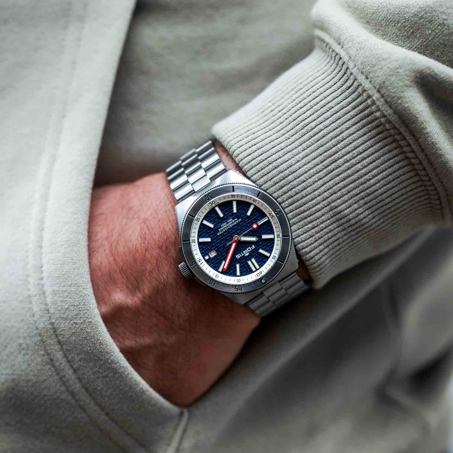Der Marinemaster M-40 Blue Japan ist sowohl für Nervenkitzel als auch für Ruhe ausgelegt. Ob beim Tauchen mit Haien oder beim Entspannen am Ufer – das ist das ultimative Werkzeug, das mühelos vom Abenteuer zur Auszeit übergeht.