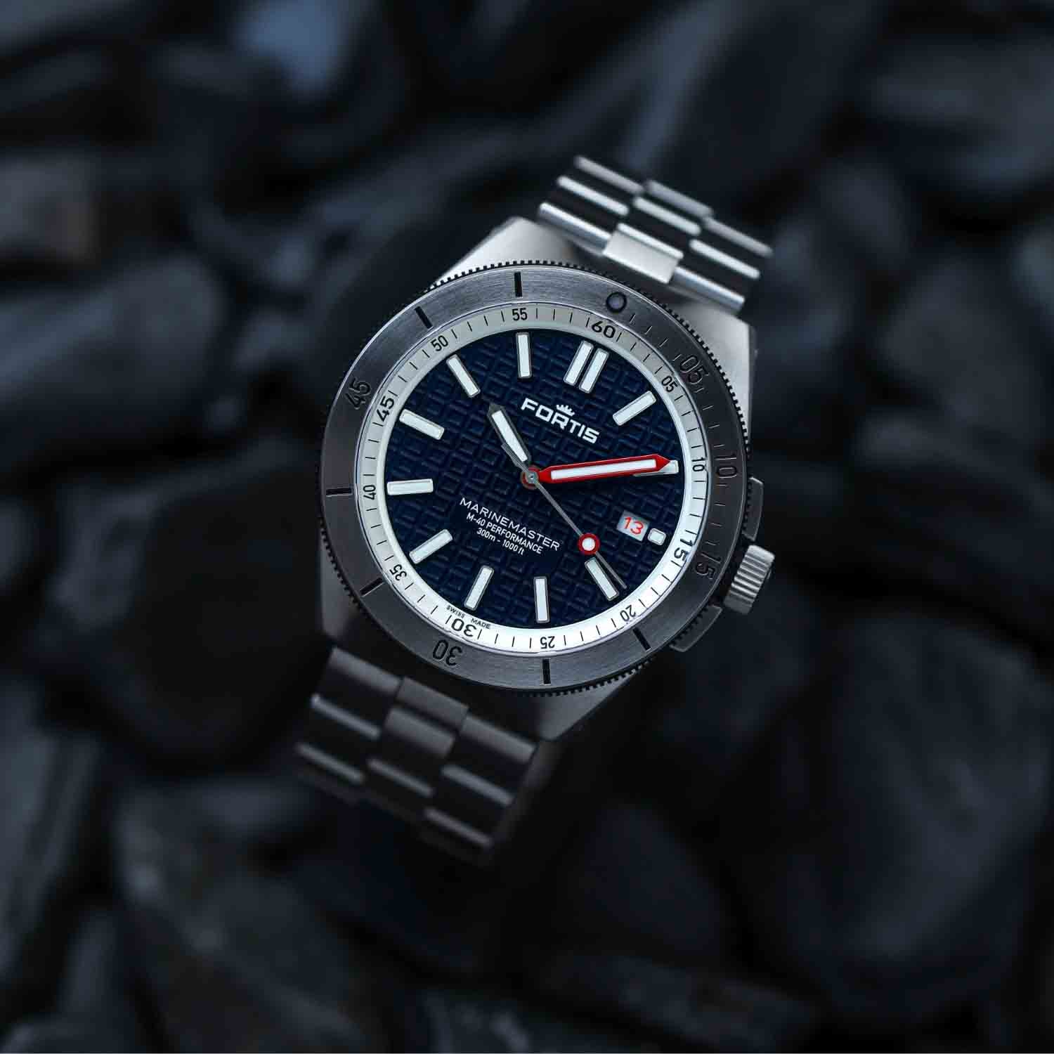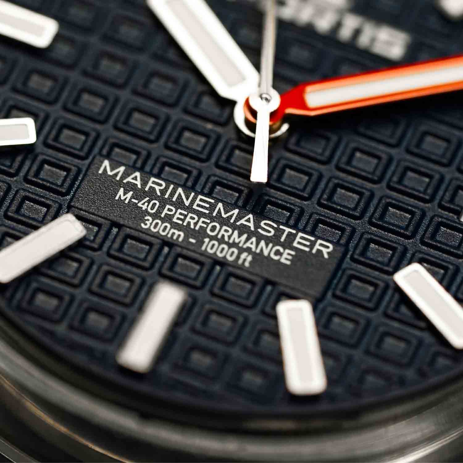 Der Marinemaster M-40 Blue Japan ist für alle, die sich in die Tiefe wagen. Sein markantes Design wird nur noch von seiner Wasserdichtigkeit bis 300 m und seiner präzisen, zuverlässigen Leistung übertroffen.