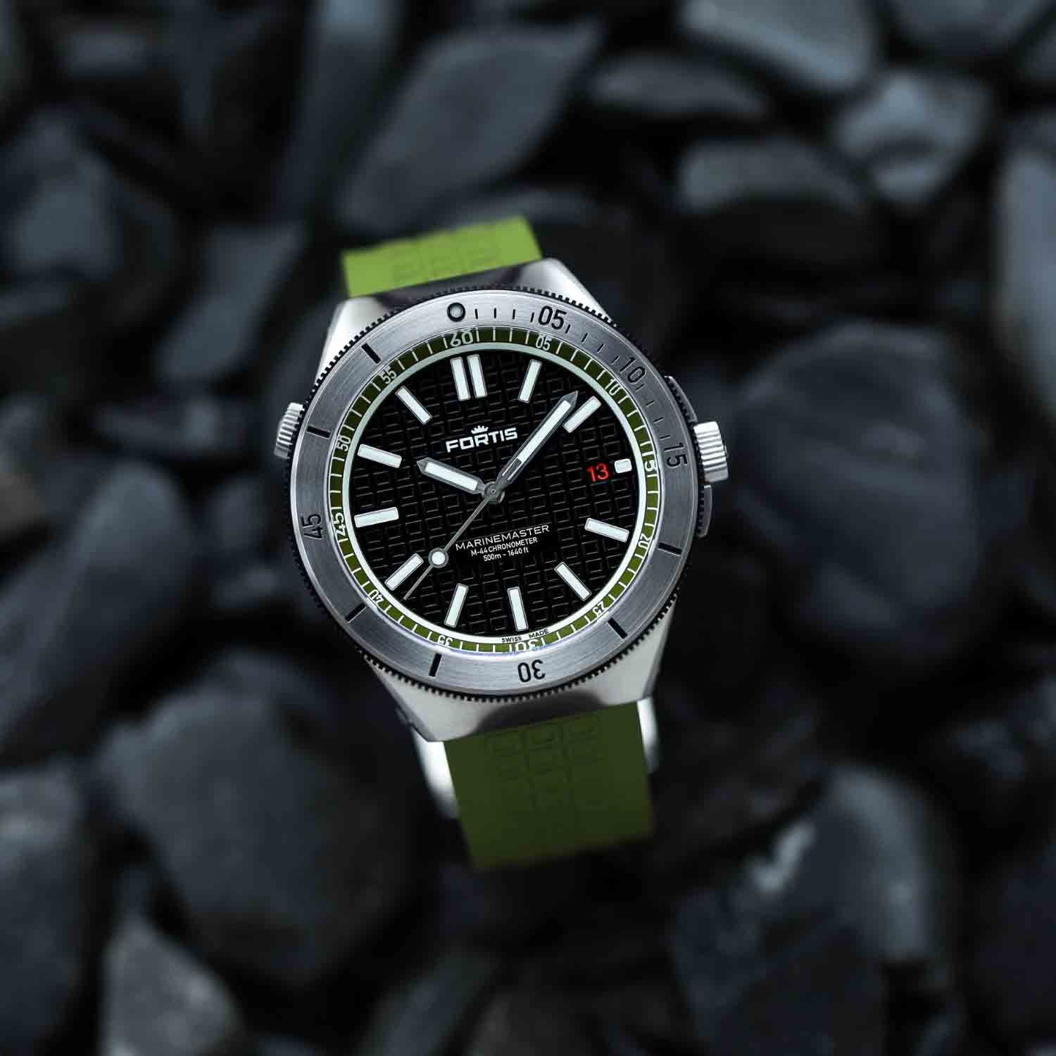 Der M-44 ist mit einer bidirektionalen Gear Bezel für besseren Grip ausgestattet, während das Fortis Lock System®️ die Lünette sichert und eine sichere sowie präzise Taucherzeitmessung gewährleistet.