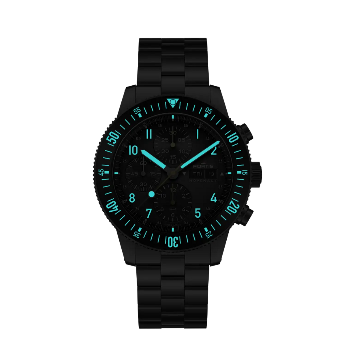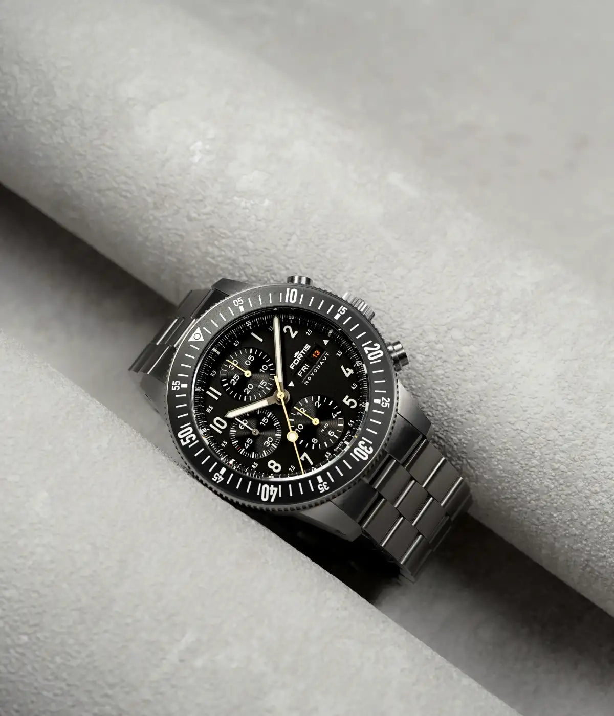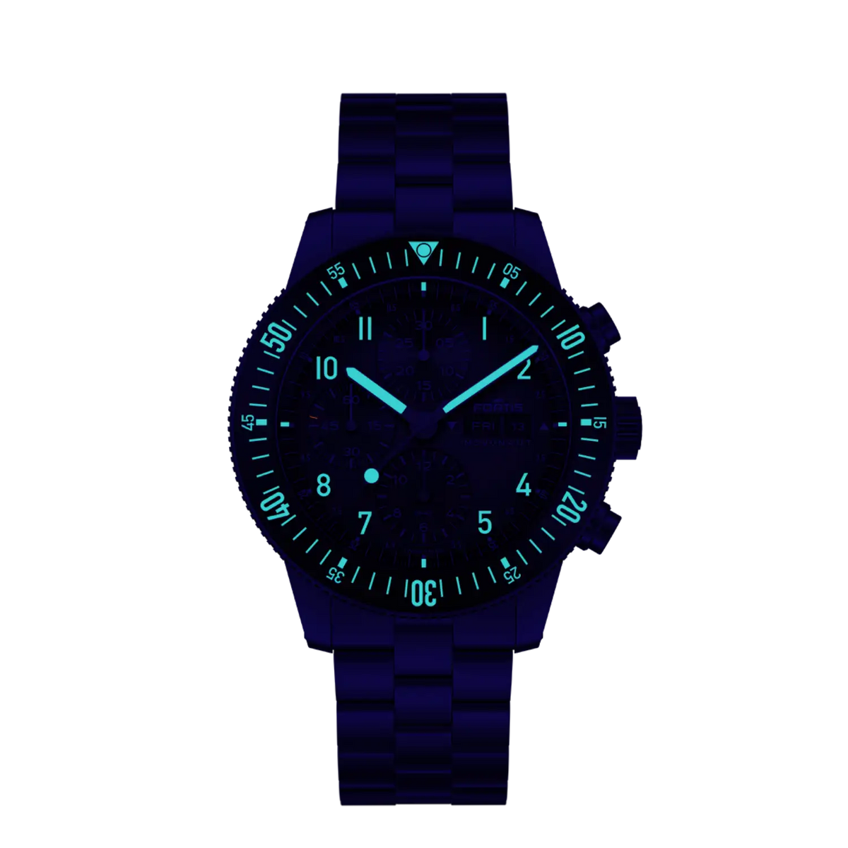 Angetrieben vom weltraumerprobten Fortis Werk 17 mit einer 60-Stunden Gangreserve, ist dieser Chronograph mit Schaltrad ein unermüdliches Kraftpaket.