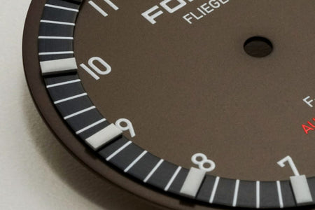 The Flieger features strong contrasts. Illuminated Brix that are applied on the circular brushed Brixtrack® increase the average readability-speed. Especially in lowlight conditions.
