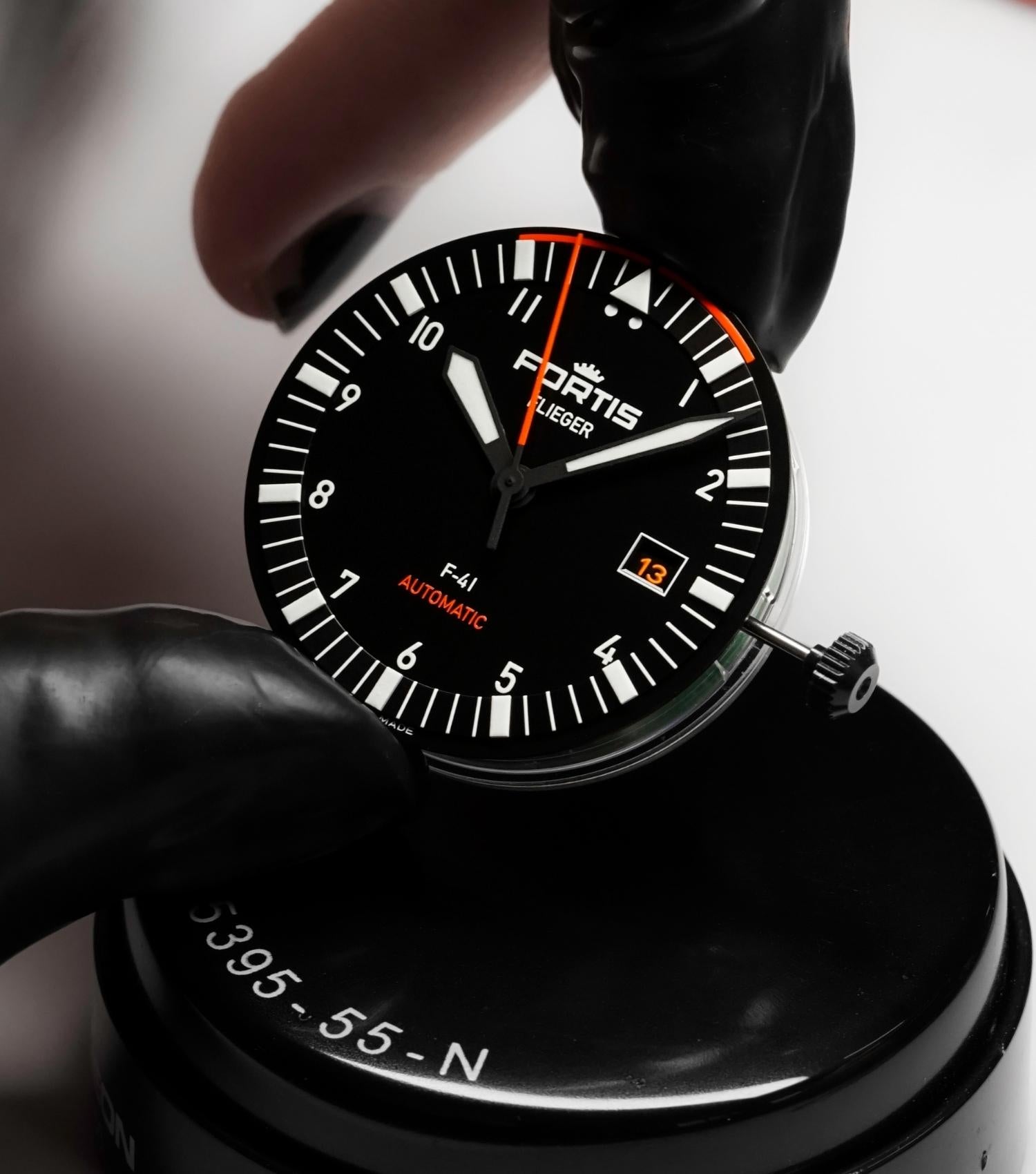 Constructed from recycled stainless steel, the Black Flieger models are finished with the ultimate state-of-the-art Swiss Diamond-Like-Carbon (DLC) Coating. With an impressive hardness of 4.500 Vickers, this coating is 20 times harder than regular steel.