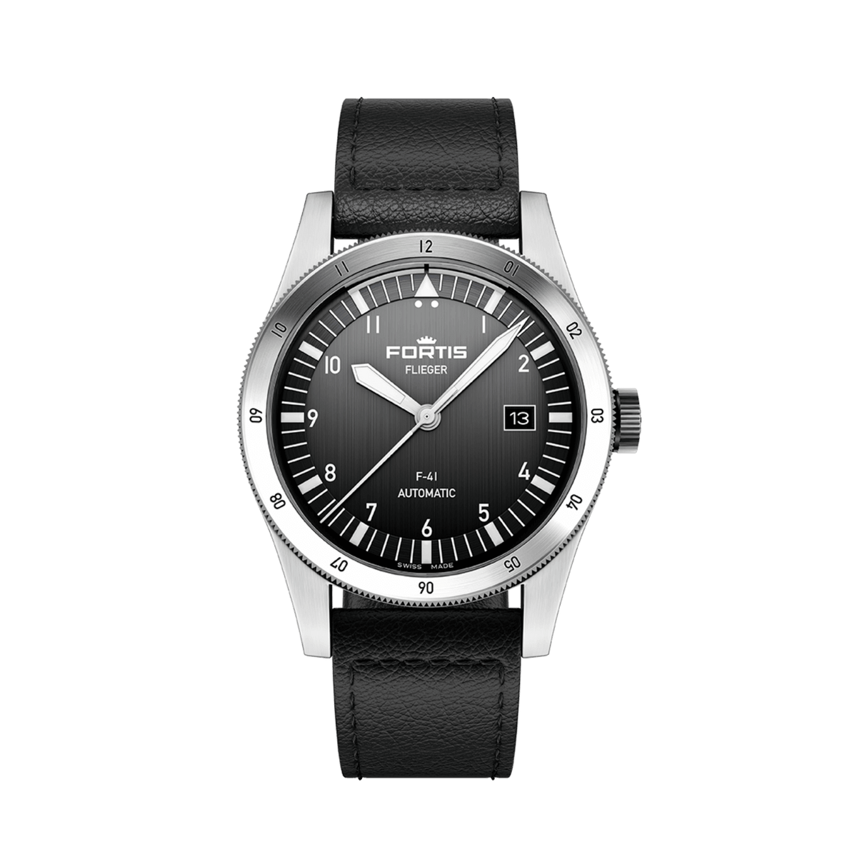The Flieger F-41 Black is a masterclass in clarity and simplicity. With a monochrome design that provides depth without distraction, it delivers precision at every glance.