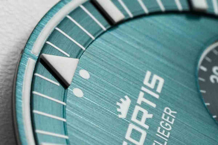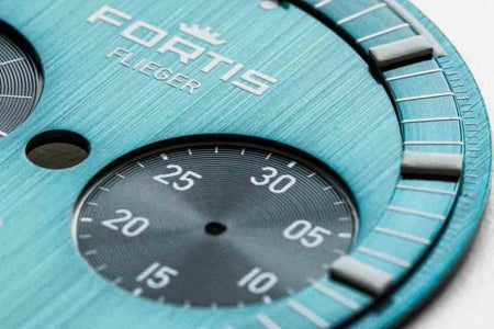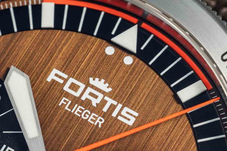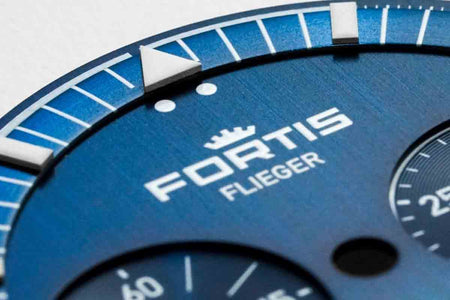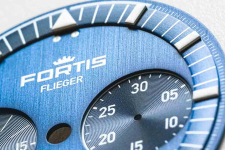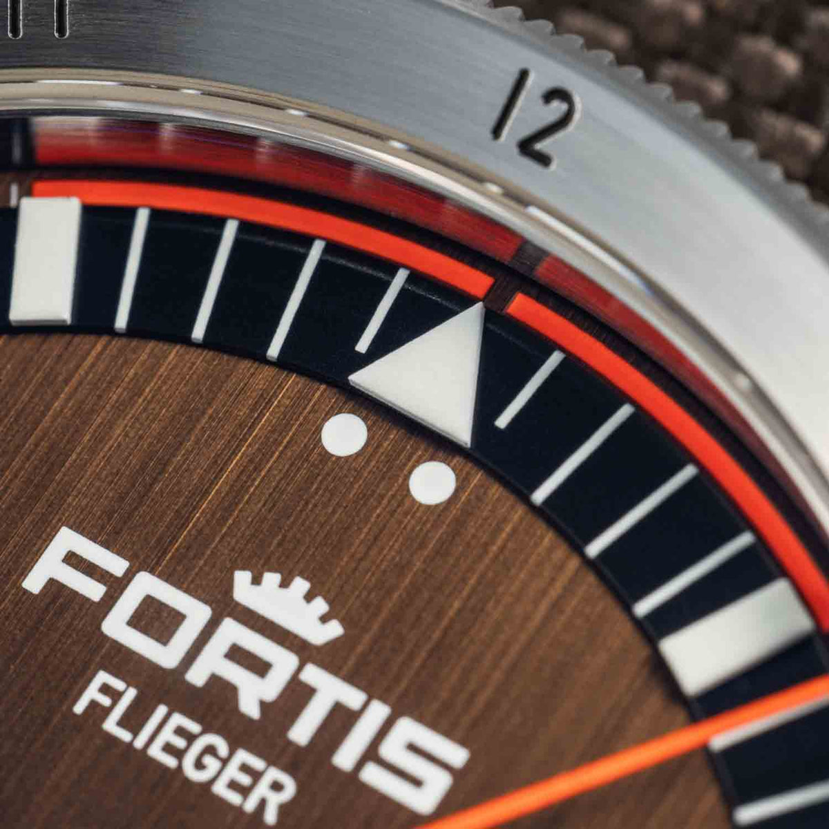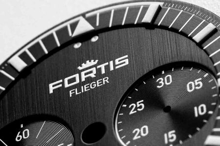 The Flieger features strong contrasts. Illuminated Brix that are applied on the circular brushed
