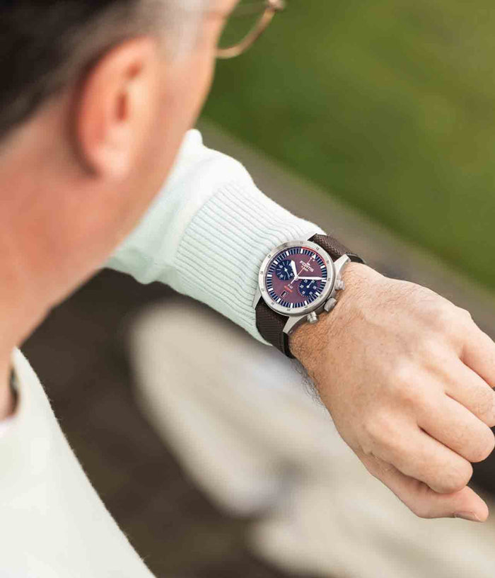 The Fratello Edition Bicompax pairs a rich Umber Brown dial with bold functionality. Co-designed with Fratello, every detail is thoughtfully crafted for clarity and performance.