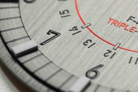 The Flieger features strong contrasts. Illuminated Brix that are applied on the circular brushed Brixtrack® increase the average readability-speed. Especially in lowlight conditions.