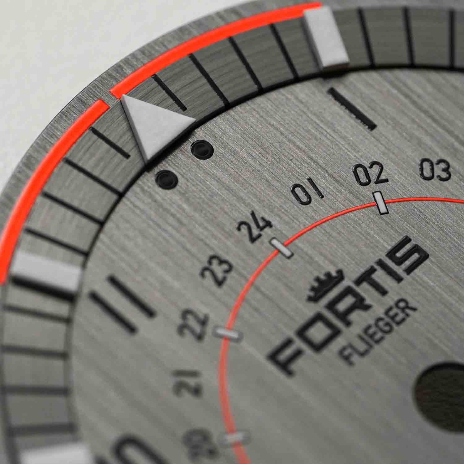 The Flieger features strong contrasts. Illuminated Brix that are applied on the circular brushed Brixtrack® increase the average readability-speed. Especially in lowlight conditions.