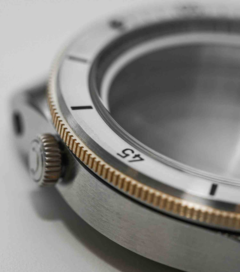 The M-44 is equipped with a bidirectional Gear Bezel for enhanced grip, while the Fortis Lock System®️ secures the bezel for safe and precise diving time measurements.