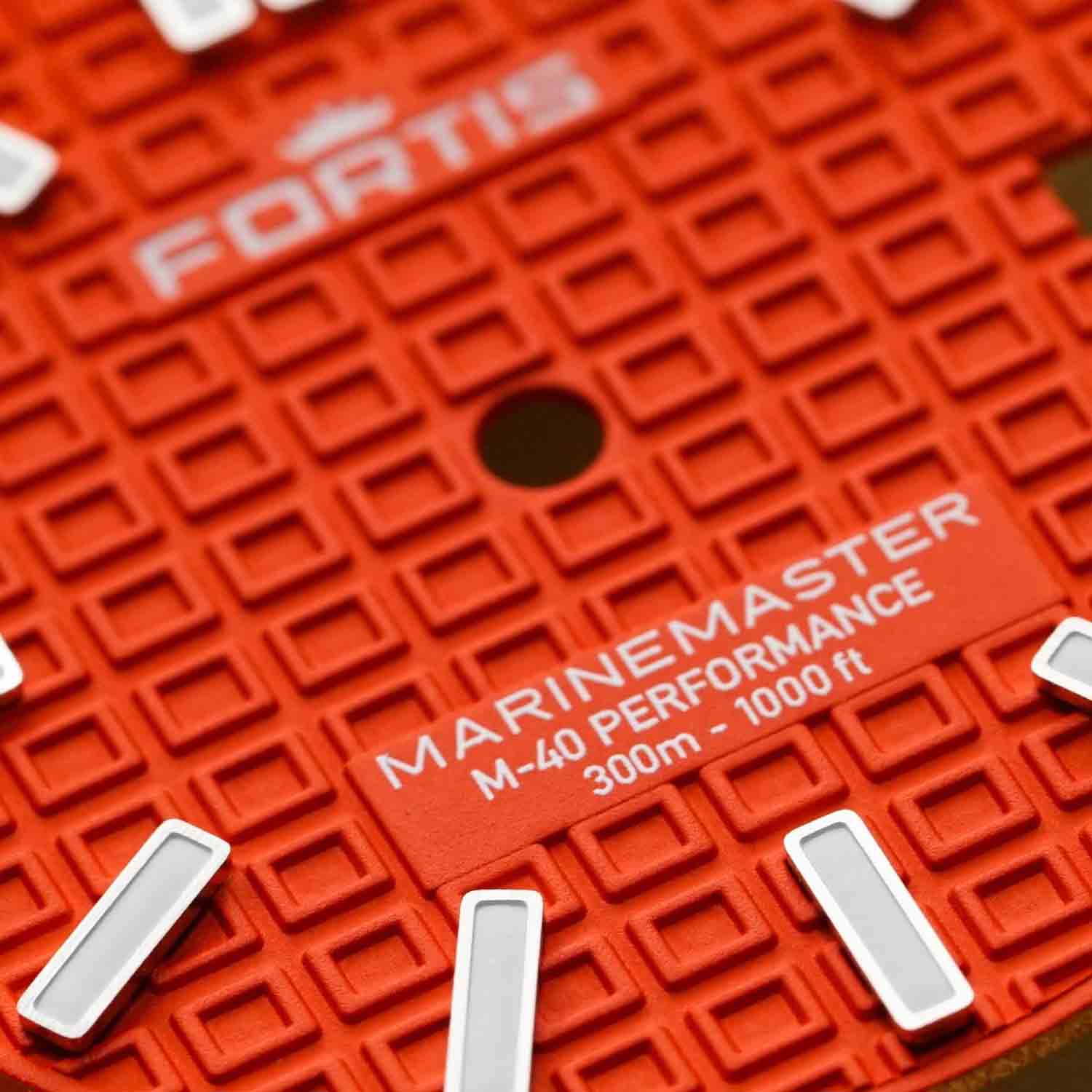 Orange dial with Fortis O-pattern with applied Superluminova®X1 Markers