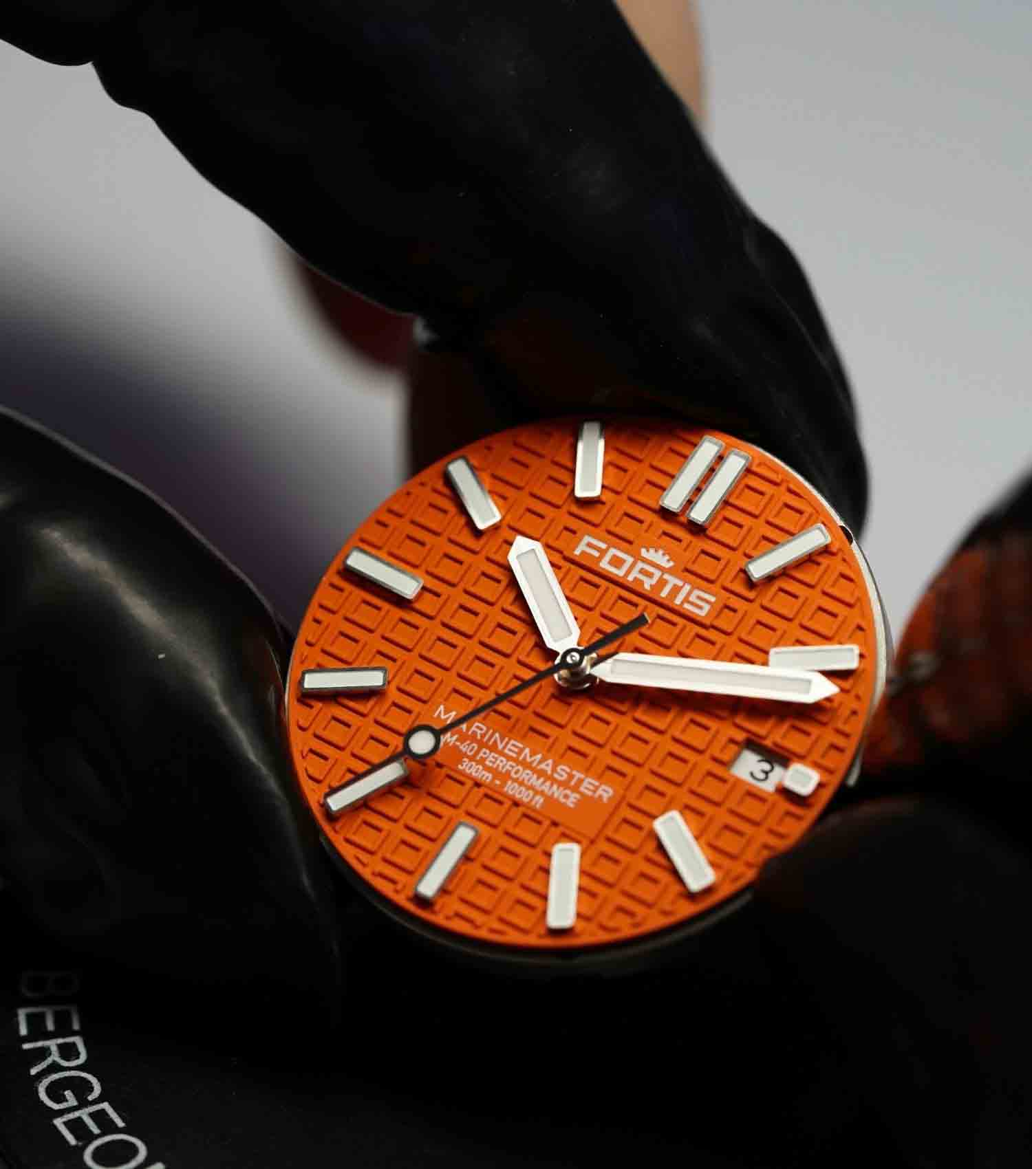 Orange dial with Fortis O-pattern with applied Superluminova®X1 Markers