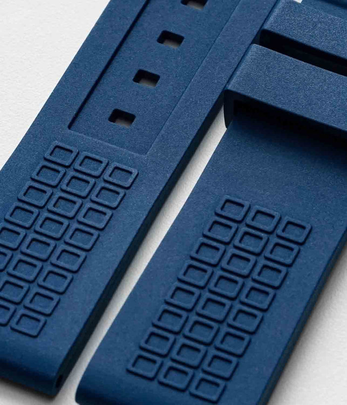 Hypoallergenic FKM rubber. Resistant to heat, chemicals and UV radiation, making the Horizon Strap ideal for all adventures, both on land and underwater.