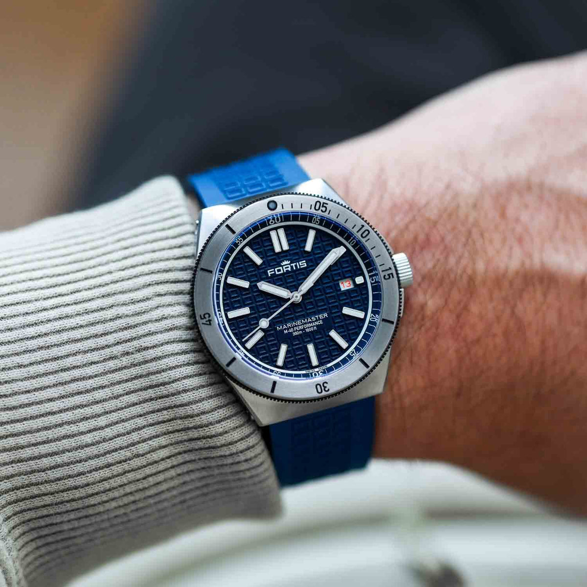 Blue dial with Fortis O-pattern with applied Superluminova®X1 Markers