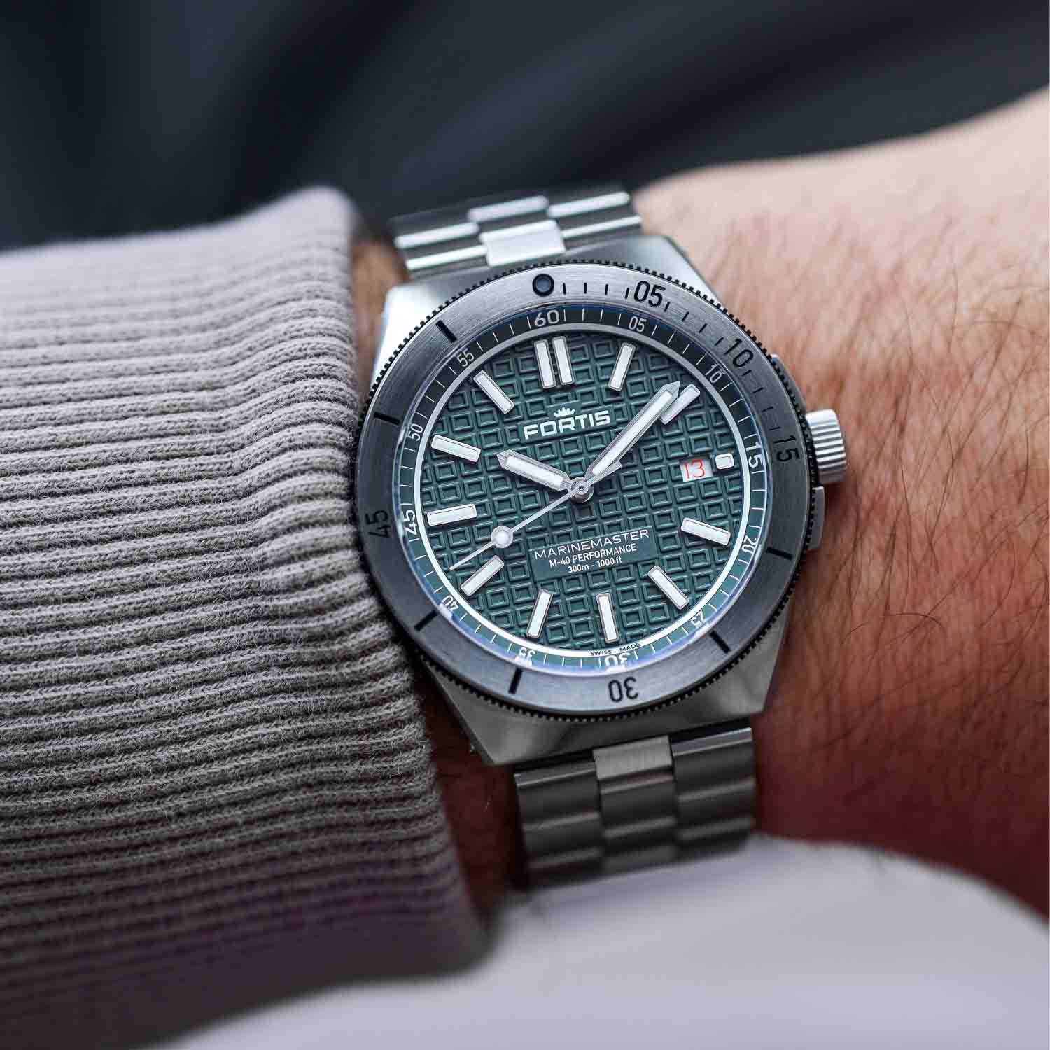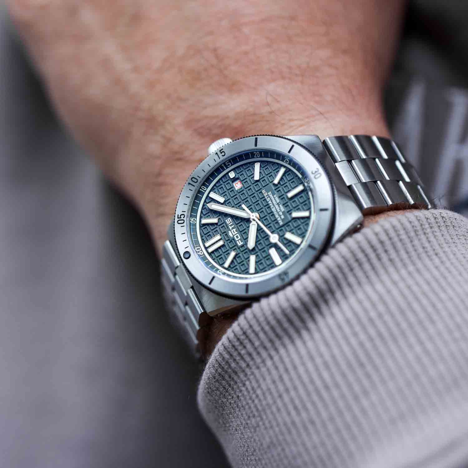 Gray dial with Fortis O-pattern with applied Superluminova®X1 Markers