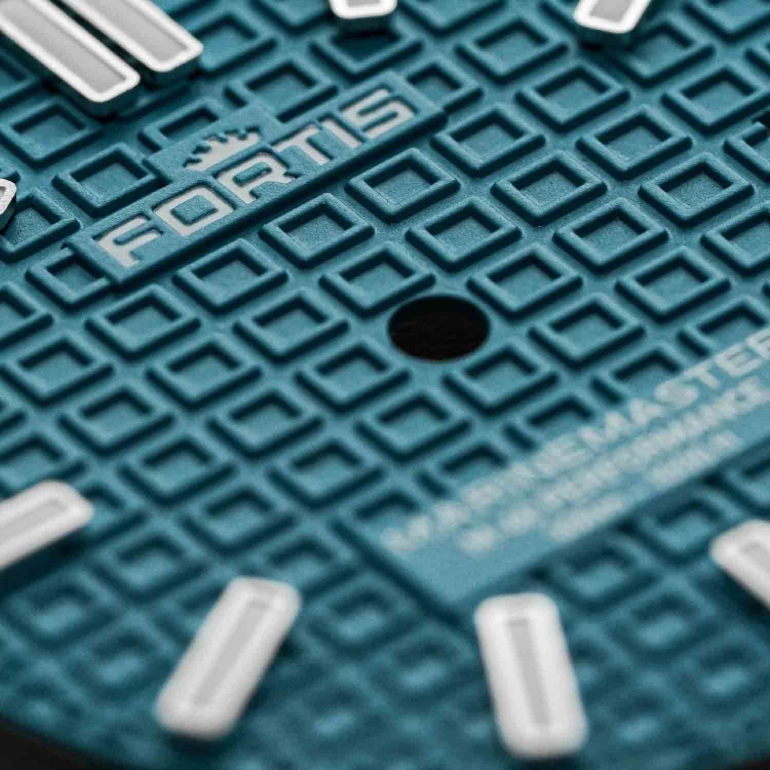 Turqoise dial with Fortis O-pattern with applied Superluminova®X1 Markers