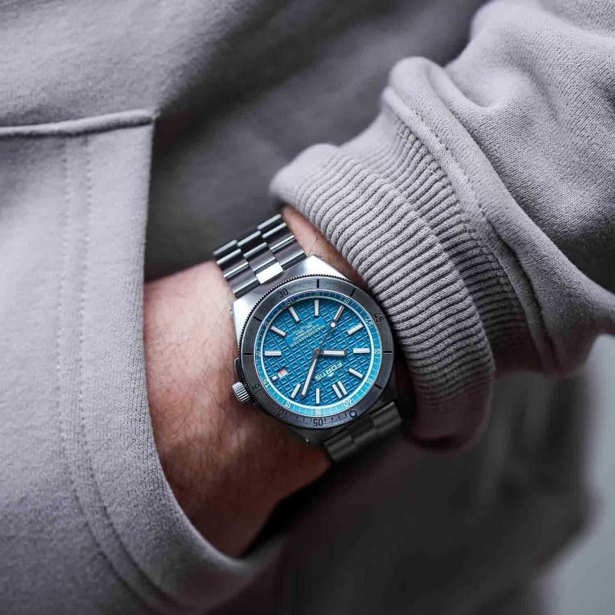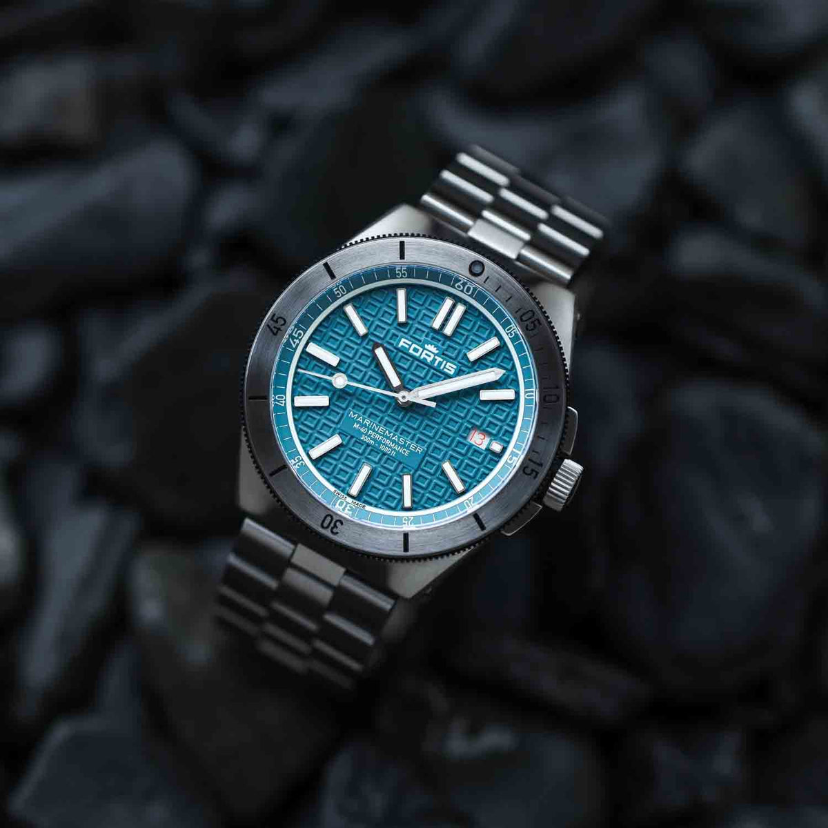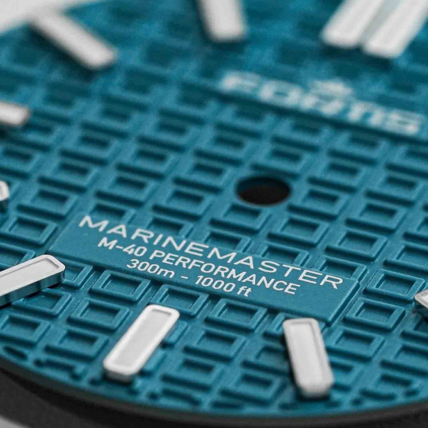 Turqoise dial with Fortis O-pattern with applied Superluminova®X1 Markers