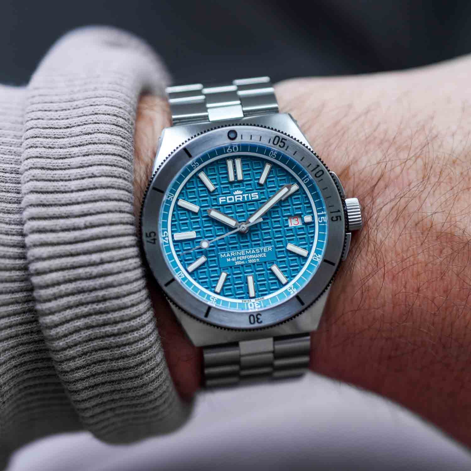 The Marinemaster M-40 in Serenity Blue pairs calm design with rugged performance. With the Gear Bezel and 300m water resistance, it’s built to thrive both in and out of the water.