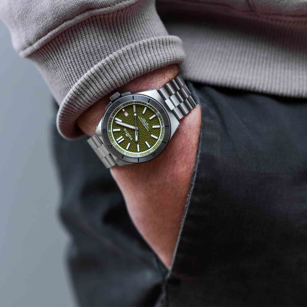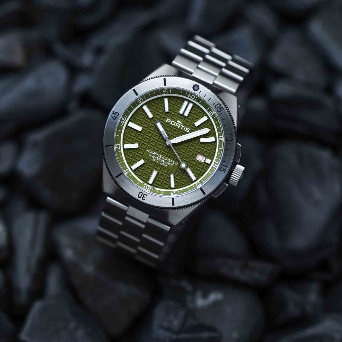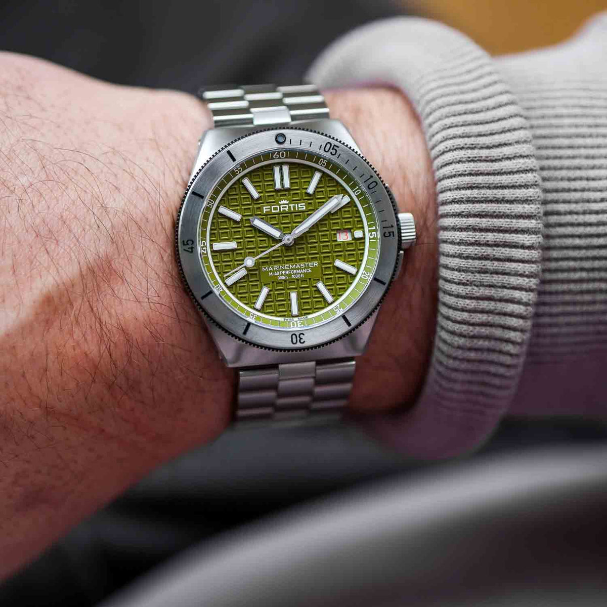 Green dial with Fortis O-pattern with applied Superluminova®X1 Markers