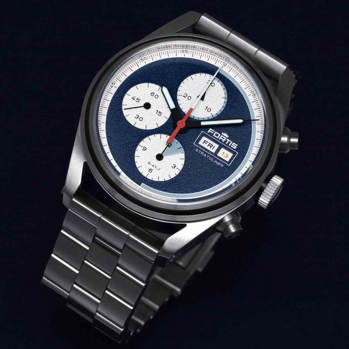 Inspired by the space shuttles and the DeLorean, the Stratoliner Blue Japan is the ultimate visionary piece. Designed by Xavier Perrenoud, its bold blue dial represents the future of space exploration.