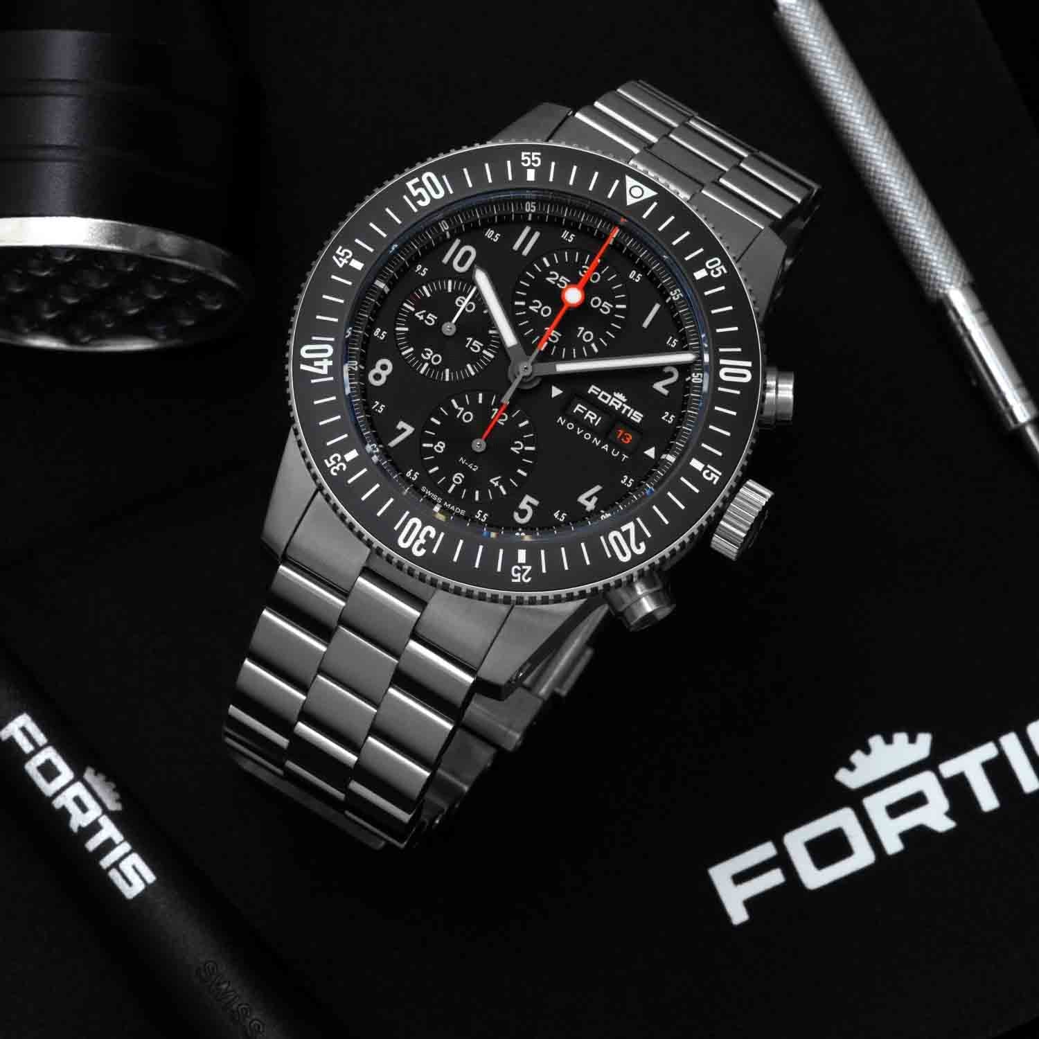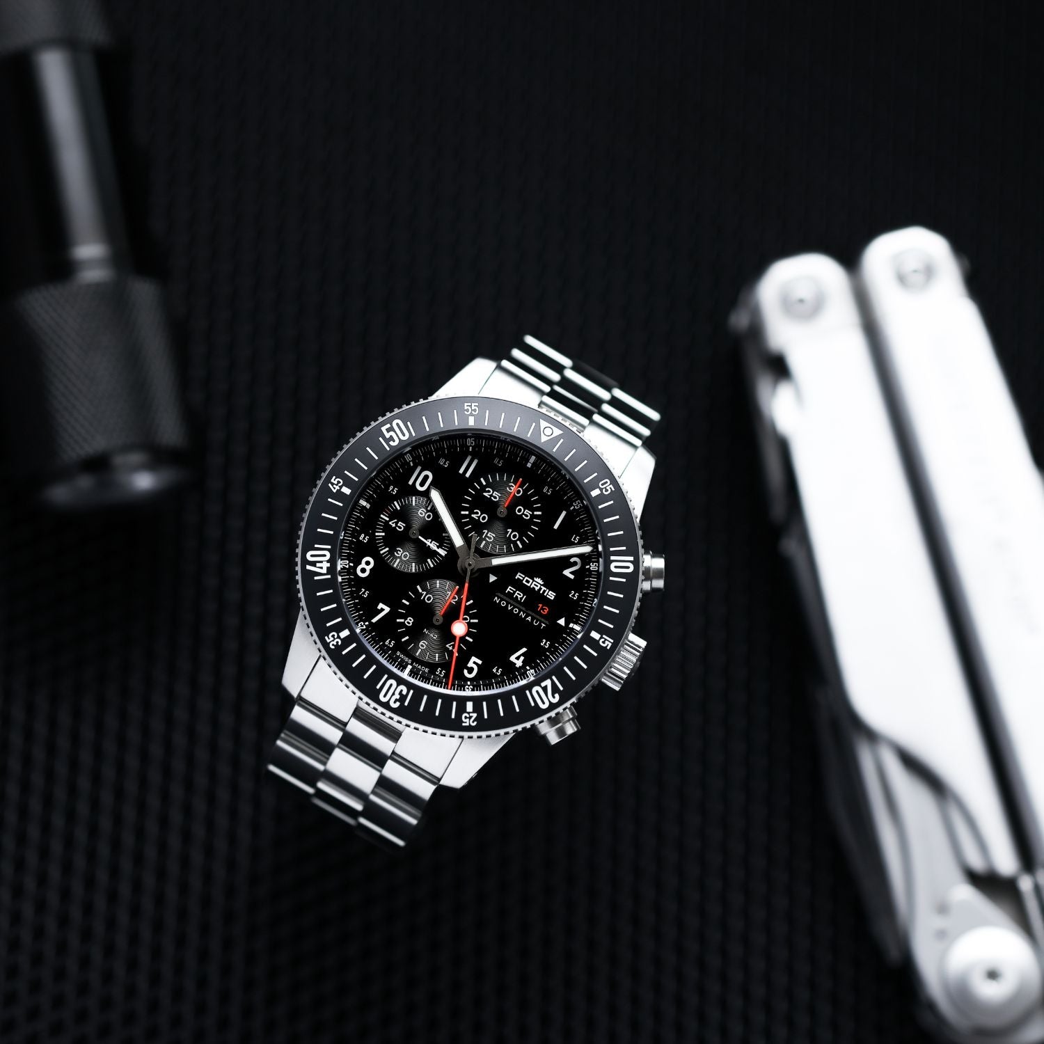 Fueled by the space-approved Fortis Werk 17, packing a 60-hour power arsenal, this column-wheel chronograph is a relentless machine.